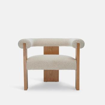 Chaise de salle à manger moderne mi-siècle en bois de chêne personnalisée avant et arrière avec bois massif Eldon Arm avec fauteuil design en tissu Boucle